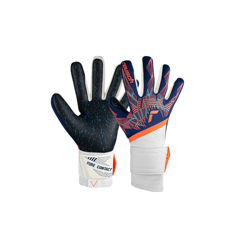 Ajustement seconde peau, légèreté et adhérence sont les maîtres mots de la gamme Pure Contact. Grâce au latex Reusch Grip Fusion, les gardiens bénéficient d'une adhérence optimale en toutes circonstances. Le contrôle du ballon est encore amélioré par la coupe négative hybride, une construction en latex enroulé autour de l'index et de l'auriculaire pour une zone de réception élargie et optimale. Une couche de néoprène ajustée, qui s'étend jusqu'au poignet, garantit un ajustement parfait. La manchette stable et la sangle entièrement élastique, composées d'une combinaison latex-néoprène, stabilisent le poignet.